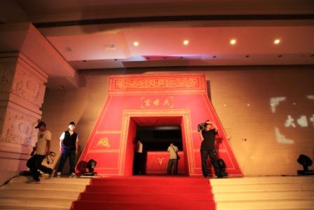 人民大会堂三层礼堂门口被装扮成古色古香的大明宫正门“丹凤门”