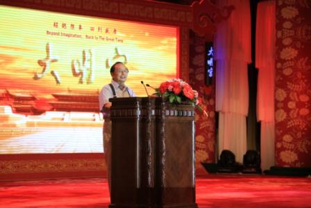 全国人大常委会原副委员长蒋正华上台讲话并对《大明宫》为还原大唐盛世的真实历史表示高兴