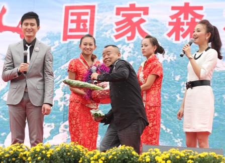 著名笑星潘长江给观众带来当地特产。
