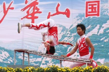 中国杂技团青年演员为大家献上高难度杂技表演。