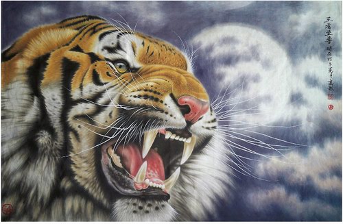 1952年出生的高歌,最早从事的是曲艺工作。上个世纪70年代,天性善良的高歌,多次给予我国画虎巨匠胡爽庵生活上的帮助。高歌最终“无意插柳柳成荫”,被胡爽庵收授为亲传弟子。因胡爽庵是张大千的亲传弟子,高歌实际上也变成了张大千的再传弟子。多年专攻画虎的高歌,现在已被业界公认是“盛世画虎第一人”。2008年奥运会期间,他的作品《猛虎下山》被奥组委收藏,并被国家文物局评定为首批“国宝级中华民族艺术珍品”。受奥组委委托,他还牵头主办了“百名画家迎奥运大型笔会”。他的工笔老虎画作《祥和》,也获得隆重纪念改革开放三十周年全国名人名家书画邀请大展金奖,“虎王” 的名号也由此诞生。