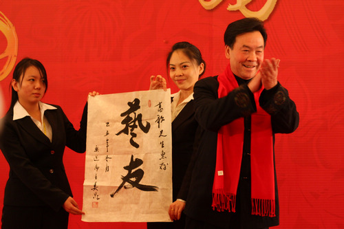 “虎王”高歌现场接受曲艺大师姜昆先生的题字