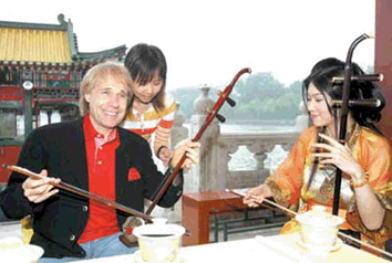 克莱德曼到达后便坐在北海公园的游船上,喝着中国茶,吃着皇家面点,用很“中国”的方式开始了宣传活动